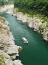 大歩危の川下りは、写真的には面白くありません。川下り乗り場(ラピス大歩危)から川に沿った高い位置に国道脇の歩道が続いているので、そこから谷を見下ろして撮るのが一番です。