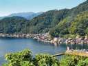 天橋立から車で30分程度です。上からの展望は、道の駅からです。 町中は、観光地然とした店、駐車場はありませんが、小さな港に車は停められ、そこからぐるりと向かいの舟屋街を撮影できます